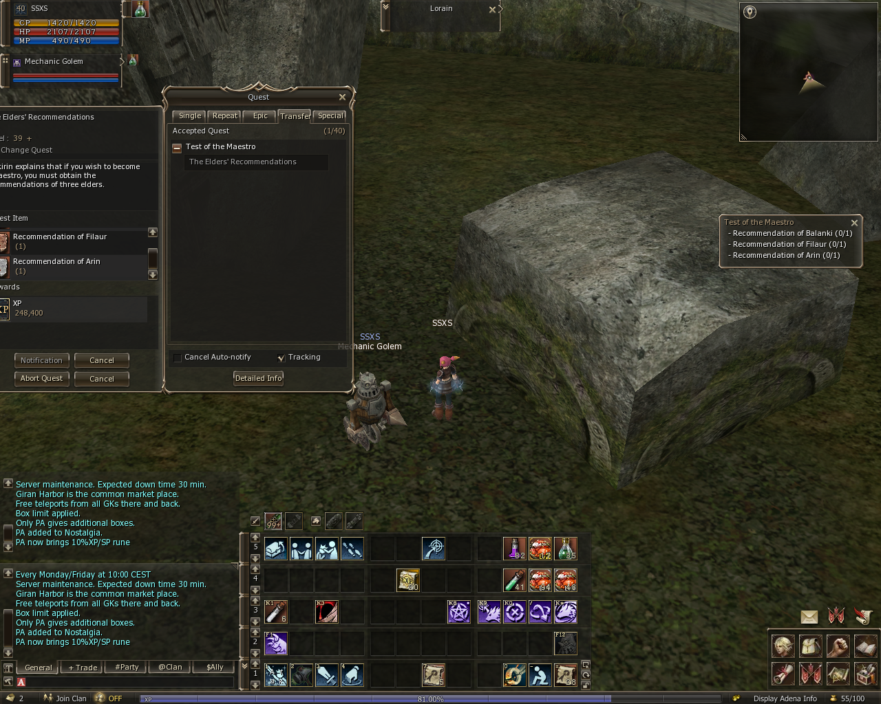 Test of the Maestro/Dwarf crafter prof. quest (Lorain bug)